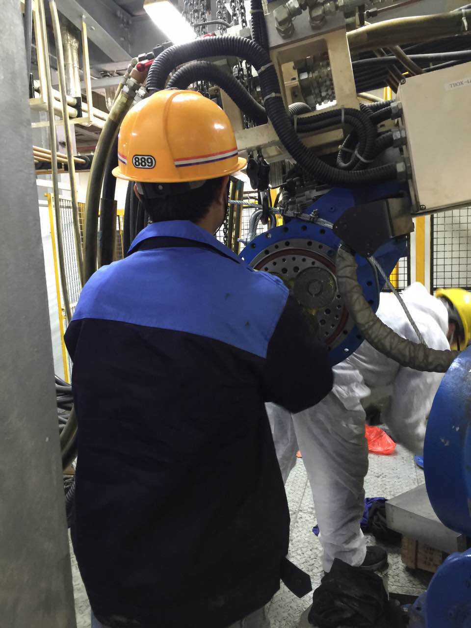 2月26号,安川人强力出发,撸起袖子,从早上一直奋战到下午5点,终于把这台MH165的减速机更换掉,并进行了生产运行测试。